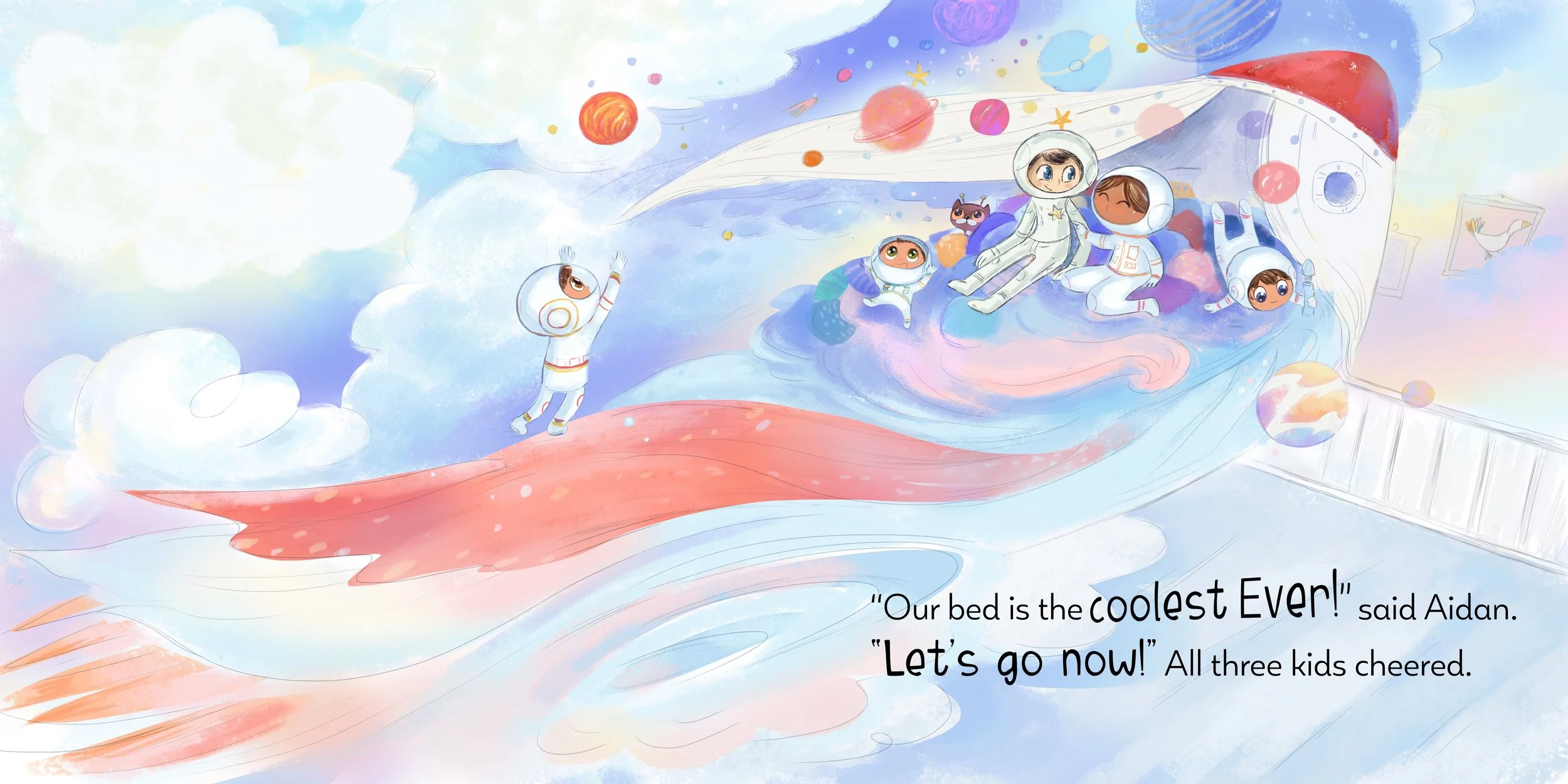 Ella Land’s Goodnight Rocket by Teenie Peabody is about three kids who don’t want to go to bed—until their mom reveals a magical secret: their bed is actually a rocket ship! With imagination as their fuel, they blast off on a dreamy adventure to explore new worlds and welcome sleep.