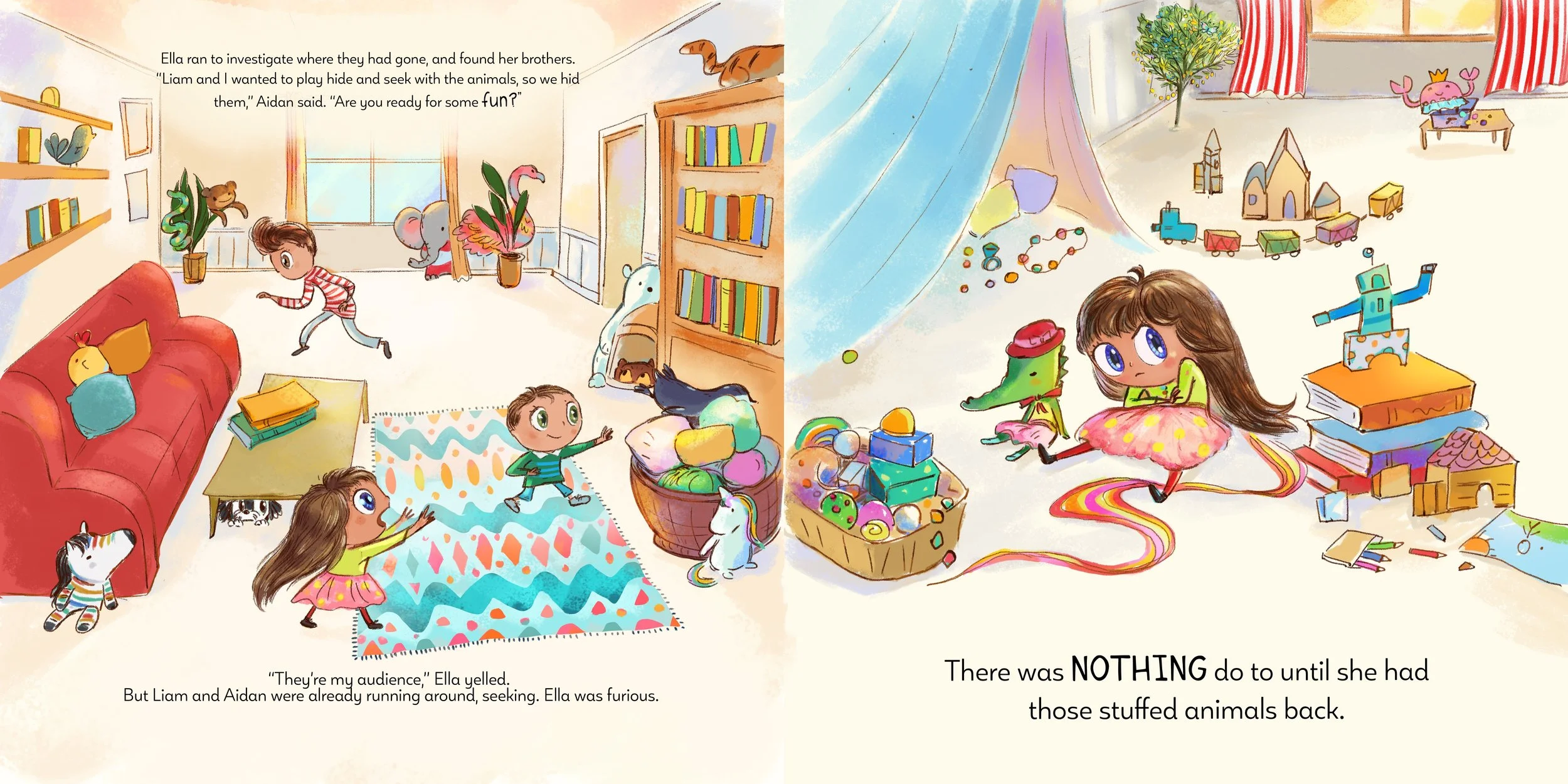 Ella Land’s Harmony by Teenie Peabody is about a girl preparing for her big puppet play—until her brothers hide all the stuffed animals! What starts as frustration turns into a wild backyard adventure featuring magical creatures, teamwork, and imagination. A playful story about creativity, problem-solving, and sibling fun.